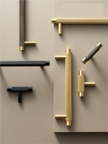 XZAVTKLW Messing Küchenmöbelgriffe Modern Rändelmuster Matt Messing Schwarz Farbe Schrank T-Bar Pull 1Stk(CH098-AB-T55)