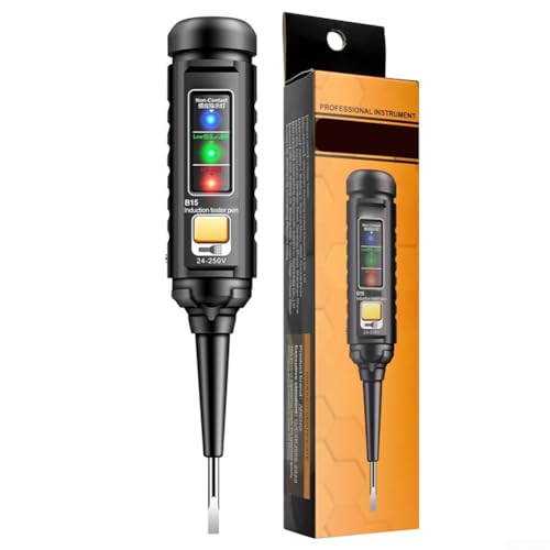 [Multifunktionales Testwerkzeug] Der Foraneng B15 Gleichspannungsprüfer ist Ihre ideale Lösung für alle elektrischen Testbedürfnisse, wodurch er sowohl für Heimwerker als auch für professionelle Elektriker perfekt ist. Sein Design ermöglicht es Ihnen, eine Vielzahl von elektrischen Aufgaben mühelos zu bewältigen. [Verbesserte Sicherheit mit NCV-Technologie] Erleben Sie Seelenfrieden mit der integrierten NCV-Technologie (Non Contact Voltage), die Sie durch eskalierende Tonwarnungen auf Live-Wechselspannungen warnt, sichere und kontaktlose Spannungserkennung in jeder Umgebung. [Genaue Fehlerlokalisierung] Identifizieren Sie schnell elektrische Fehler mit dem Tester im Taschenformat. Der NCV-Modus erkennt die Signalstärke, sodass Sie Stromunterbrechungen ohne direkten Kontakt lokalisieren können, was die Effizienz der Fehlerbehebung erheblich verbessert. [Benutzerfreundliches Sonden-Design] Mit einer negativen Polsondenbuchse für nahtlosen Betrieb, ermöglicht dieser Tester eine einfache Verbindung und Aktivierung des automatischen Erkennungsmodus, wodurch Ihre Testprozesse für maximalen Komfort optimiert werden. [Umfassende Komponententestung] Messen Sie verschiedene elektronische Komponenten genau mit der umfangreichen Funktionalität dieses Spannungsteststifts. Es wurde entwickelt, um die Produktivität und Zuverlässigkeit in der elektrischen Diagnose zu steigern, was es zu einem unverzichtbaren Werkzeug für Profis macht.