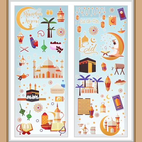 GWHOLE 9 Stück Fensterbilder Ramadan Deko Eid Mubarak Fenstersticker Fenster Aufkleber Ramadan Sticker Stern Halbmond Selbstklebend