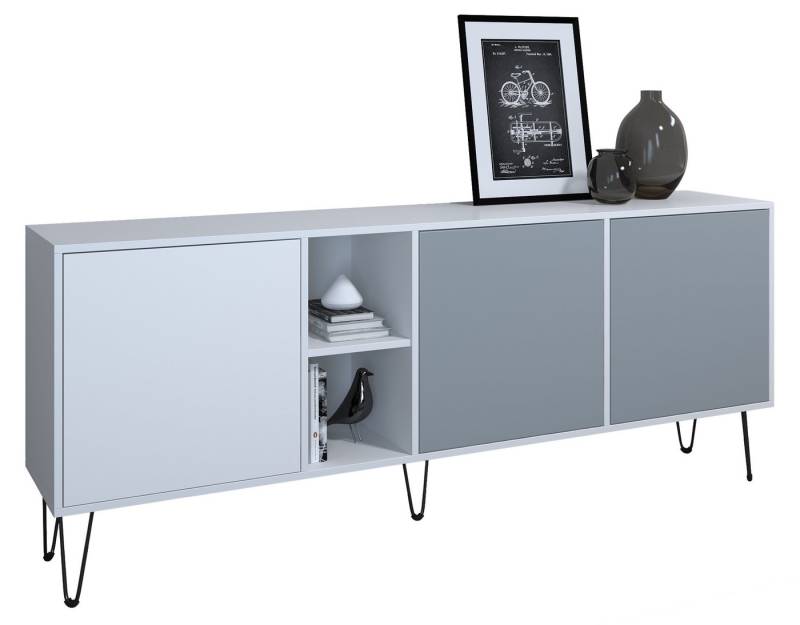 Vladon Sideboard Havana (TV-Schrank mit 3 Türen und 2 offene Fächer, Kommode Made in Germany), Weiß matt / Weiß matt (181,5 x 73 x 35 cm)
