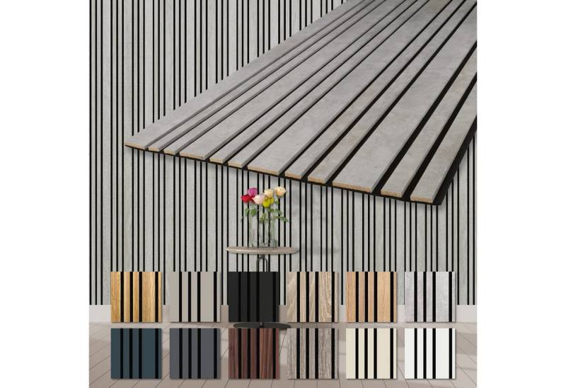 Hexim Wandpaneel, (Akustikpaneele 2 Stück 278x60cm Holz Mila - flexible Holzpaneele Platten Wanddeko Wand Kombipaneel Wandverkleidung Schalldämmung Akustikfilz grau 3.34m² Chicago Concrete)