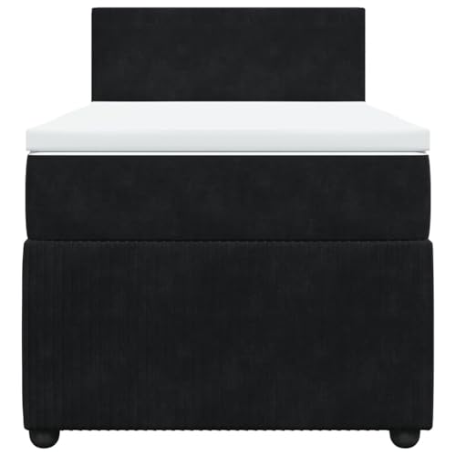 Mit diesem Boxspringbett genießt du eine erholsame Nachtruhe. Es sorgt für maximale Entspannung und einen angenehmen Schlaf. Weiches und komfortables Material: Der Samtstoff hat eine weiche und sanfte Oberfläche, die sich angenehm auf der Haut anfühlt und höchsten Komfort bietet.Taschenfederkernmatratze: Diese Matratze hat einzelne Taschenfedern, die unabhängig voneinander arbeiten. Somit bietet sie dir optimalen Halt, indem sie auf Druckstellen in jedem Bereich unabhängig reagieren. Jede Taschenfeder stützt die Körper-Druckstellen individuell.Komfortable Matratzenauflage: Die Auflage verbessert den Halt und den Komfort mit ihrer weichen, atmungsaktiven Oberfläche und verlängert gleichzeitig die Lebensdauer deiner Matratze. Der abnehmbare Bezug ermöglicht ein einfaches Waschen, was die Pflege der Matratze zum Kinderspiel macht.Latten für optimale Unterstützung: Das Bettgestell ist mit Latten ausgestattet, die deine Matratze stützen und auch für Atmungsaktivität sorgen. Vielseitiges Design: Dieses Bettgestell passt sich verschiedenen Einrichtungsstilen an und sorgt für eine stilvolle Ergänzung Ihres Schlafzimmers. Es bietet eine stabile Grundlage für eine erholsame Nachtruhe und trägt gleichzeitig zur Ästhetik des Raumes bei. Bettgestell mit Kopfteil:.Farbe: Schwarz.Material: Samt (100% Polyester), Sperrholz, Holzwerkstoff.Abmessungen: 200 x 80 x 100,5 cm (L x B x H).Verstärkte Kunststoff-Füße.Zusammenbau erforderlich: Ja.Matratze:.Farbe: Weiß und Schwarz.Material: Samt (100% Polyester).Material der Füllung: Taschenfedern, Schaumstoff.Festigkeit: Mittel.Abmessungen: 80 x 200 x 20 cm (B x L x H).Matratzenauflage:.Farbe: Weiß.Material: Stoff (100% Polyester).Füllung: Schaumstoff. Wenn Sie sich dafür entscheiden, kaufen Sie nicht nur einen einfachen Gegenstand, sondern eine Verbindung von Funktionalität und Schönheit, die Ihr tägliches Leben bereichern wird. Wir sind zuversichtlich, dass es die richtige Wahl sein wird und Sie jeden Moment des Gebrauchs genießen können. Wir wünschen Ihnen ein Einkaufserlebnis voller Überraschungen und Freude!