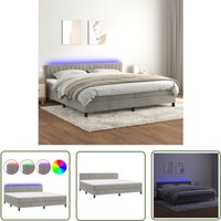 The Living Store Boxspringbett mit Matratze & LED Hellgrau 200x200 cm Samt - Boxspringbett - Doppelbett - Samtbett - Luxusbett - Bettrahmen