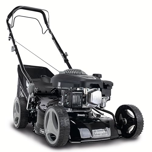 Scheppach MS132-42B Benzin Rasenmäher Black Edition mit Antrieb | für Rasenflächen bis 800m² | Schnittbreite 42cm | Leistung 3,3PS | Schnitthöhenverstellung in 7 Stufen (25-75mm) | Fangbox 45L