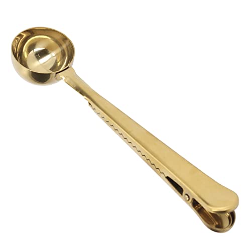 Zerodis Schulmaterial Schaufeln mit Clamp/Holder 2 in 1 Edelstahl Kaffee Messlöffel mit Dichtungsklammern Kaffeelöffel Versiegelungsklamm (#1)