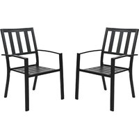 2er Set Gartenstühle Wetterfest Terrassenstühle Metall Balkonstuhl Stapelstühle mit Armlehnen für Garten und Außenbereich, Schwarz - Phivilla