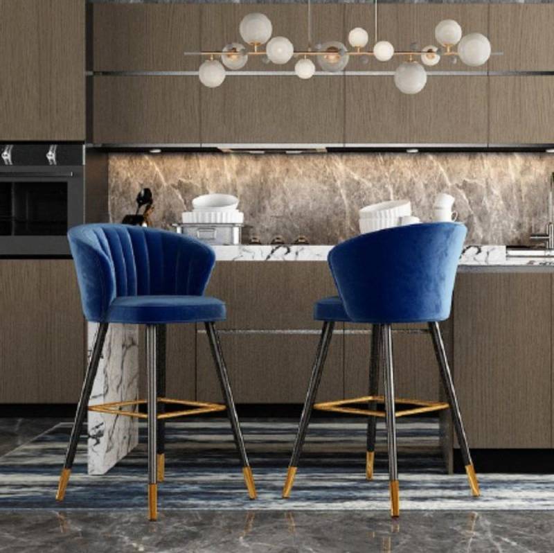 JVmoebel Barhocker Blauer Design-Barhocker mit Polster und Holzbeinen aus Edelstahl (1 St., Barstuhl), Made in Europa