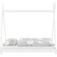ML-Design Kinderbett 80x160 cm mit Rausfallschutz, Dach und Lattenrost, Weiß, Massivholz Kinder Bett, Hausbett für Mädchen/Jungen, Bettenhaus aus