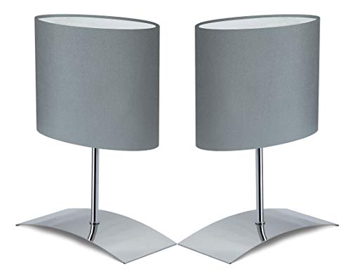 Trango 2er Pack 2018-04G*2 Nachttischlampe *GREY EAGLE* Tischleuchte mit Grau Stoffschirm inkl. je 1x E14 Fassung & Schnurschalter, Fensterbanklampe, Schreibtischleuchte, L: 20cm – B: 10cm - H: 30cm