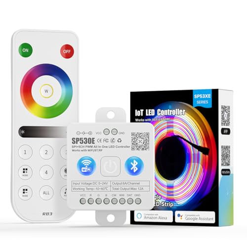 FCOB WiFi Bluetooth Steuerung SP530E und RB3 2.4Ghz RGB RGBW RF Fernbedienung Kit Geeignet für COB SMD PWM/SPI WS2811 WS2812B WS2814 SK6812 etc RGB RGBW LED Streifen DC5V DC12V DC24V