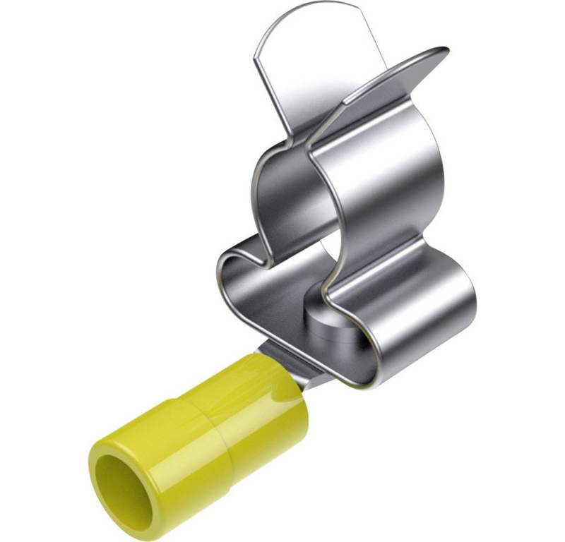 Schirmklammer 6 - 8mm, aufgenietet auf Ringkabelschuh, Isolierung PA gelb, UL-gelistet, für Leiterquerschnitte 4,0 - 6,0mm²