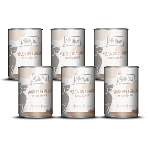 MjAMjAM – Premium Nassfutter für Hunde - vorzüglicher Strauß an fruchtigem Apfel, 6er Pack (6 x 400g), getreidefrei mit extra viel Fleisch