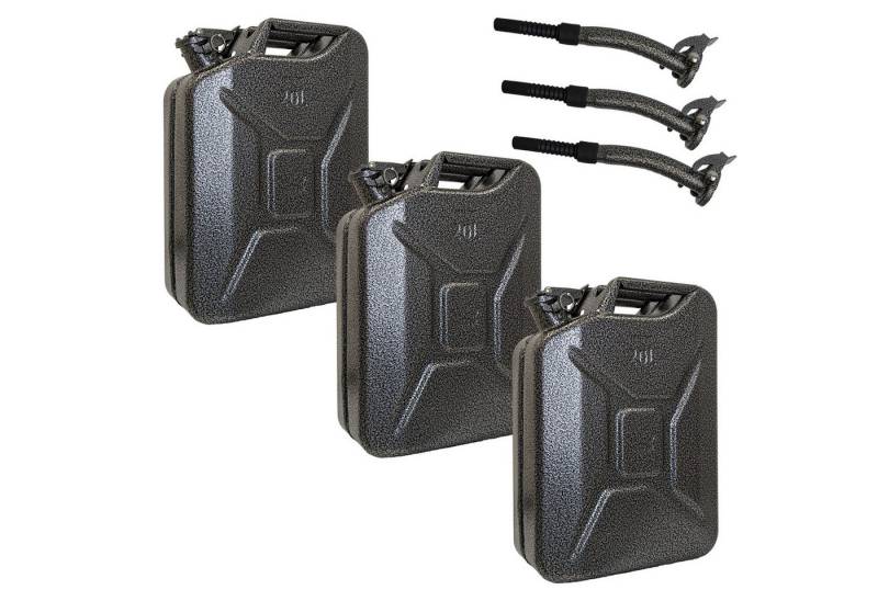 TRUTZHOLM Kanister 3x Metallkanister Snakeoptik 20 Liter inkl. Ausgießer + Halter Benzin (Set)