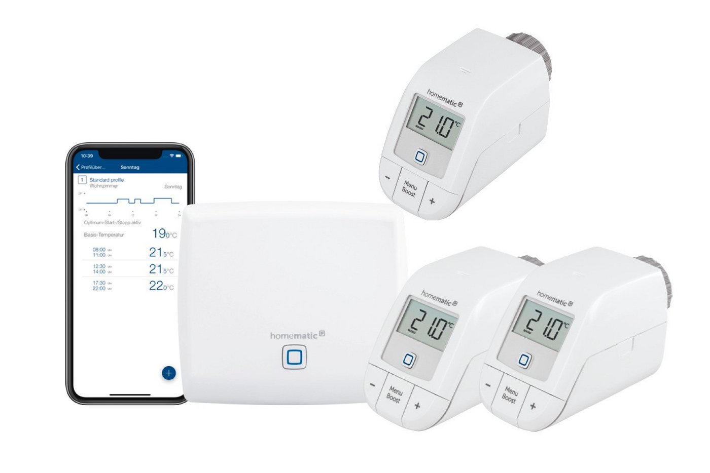 Homematic IP Smart Home Starter Set Heizen, Digitale Steuerung für Heizung mit oder ohne App, Alexa, Google Assistant, einfache Installation, Energie sparen, Thermostat, Heizungsthermostat, 156537A0