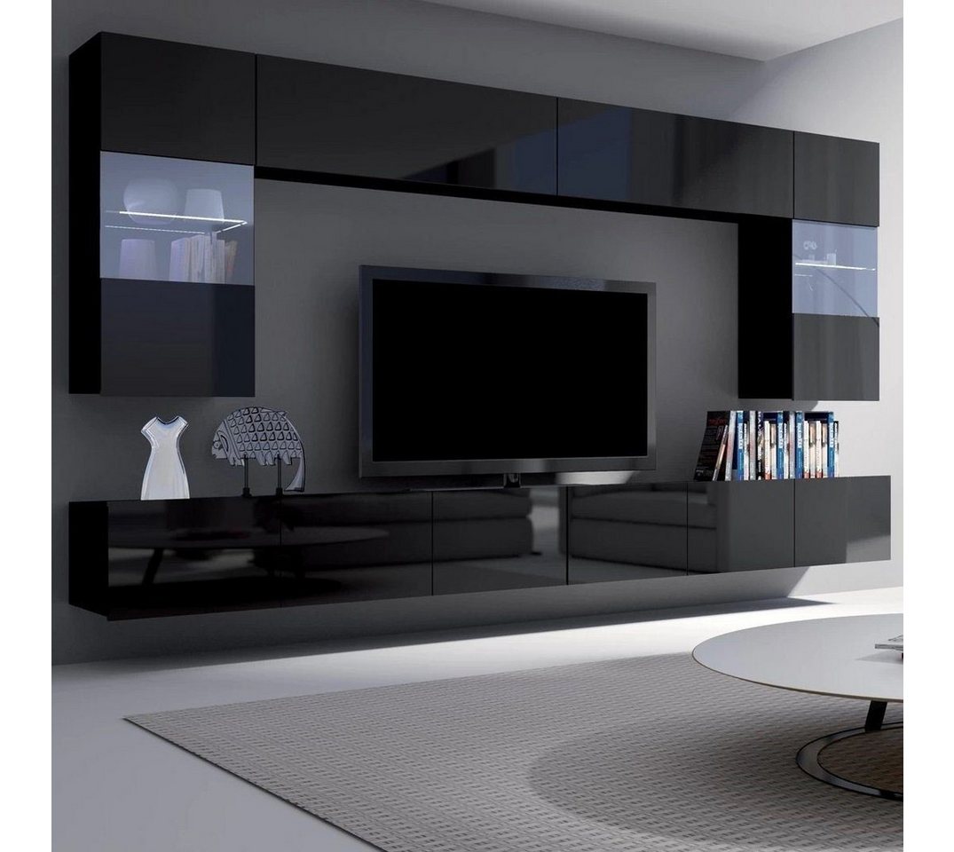 DB-Möbel Sideboard Media-Board Mediawand SET LIBRE "DOMINON" Mit LED-Schwarz/Glanz