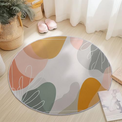 Teppiche, rund, 180 cm, abstrakte Blumen, bunt, waschbar, Kreisbereich, Schlafzimmer, Teppich, rund, Kurzflor, rutschfest, für Esszimmer, Kinderzimmer, Flur