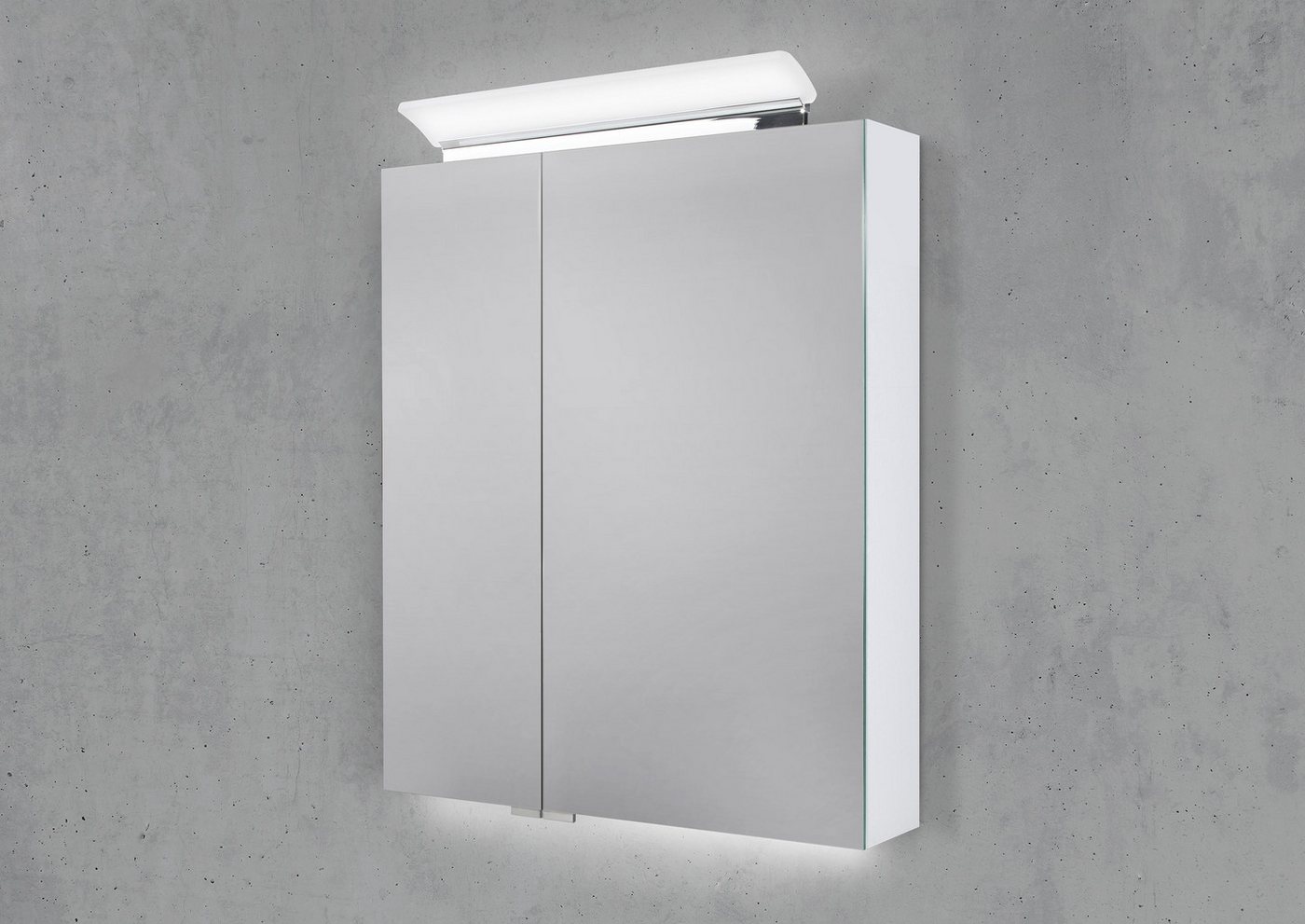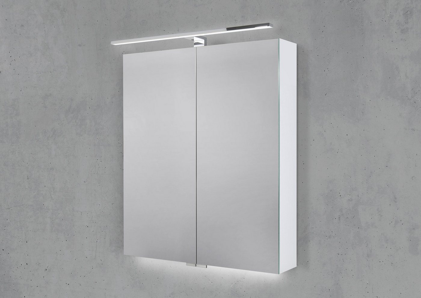 Intarbad Badezimmerspiegelschrank Spiegelschrank 60 cm MULTI LED Acryl Aufsatzleuchte Doppelspiegeltüren