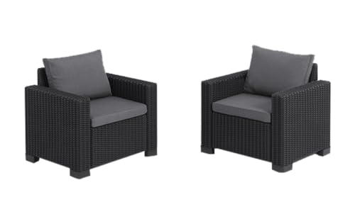 Allibert by Keter Gartenlounge Sessel California, graphit/cool grey, 2er Set, inkl. Sitz- und Rückenkissen, Kunststoff, runde Rattanoptik, 83 x 68 x 72 cm