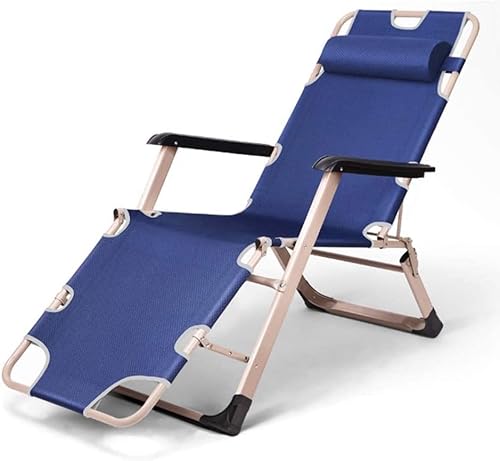 CHCHC Faltbare Gartenliege mit Halsunterstützung 380lbs Strandstuhl Verstellbarer Camping Lounger Deck Stuhl Liegen(Blue)