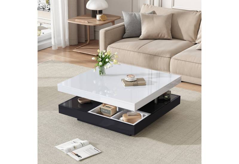 STILVORA Couchtisch mit Tischplatte drehbar,Wohnzimmertisch Sofatisch mit Ablagefach (Satztisch, Wohnzimmertisch Beistelltisch, 1-St., 4 Ablagefach), Doppelcouchtisch mit Hochglanzplatte Tischplatte 360° drehbar