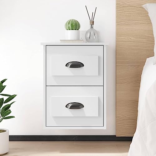 HETFTJN Wand-Nachttisch 2er Set Weiß 41,5x36x53 cm aus Holzwerkstoff mit 2 Schubladen schwebendes modernes Design platzsparend für Schlafzimmer Wohnzimmer Flur