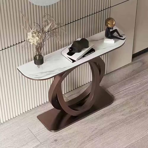 Tqertrtfxa Wunderschöner rechteckiger Marmor-/Metallrahmen,Schrank mit Schmiedeeisenrahmen,Moderner, geometrischer Konsolentisch mit Metallbeinen(F,120cm/47.2in)