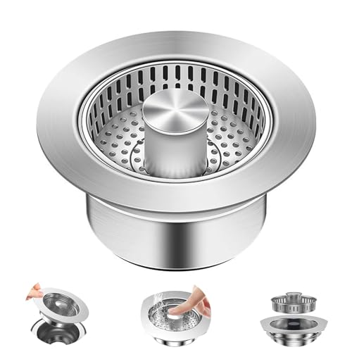 Spülbecken Sieb Abflusssieb Küchenspüle Und Waschbeckenstöpsel Abflusssieb Waschbecken 3-In-1 Pop-Up Edelstahl Abflussstopfen Mit Anti-Verstopfungs-Korb, für Spülbecken Bohrung 76-81 Mm, Tiefe > 40 Mm