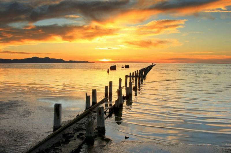 Papermoon Fototapete HOLZ-BRÜCKE-ALT STEG MEER OZEAN SEE STRAND SONNE KÜSTE