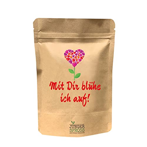 JUNGER SPROSS Pflanzbeutel - Mit Dir blühe ich auf! Pflanzbeutel mit Freude verschenken Anzuchterde und Samen im Papierbeutel mit Sprüchen.
