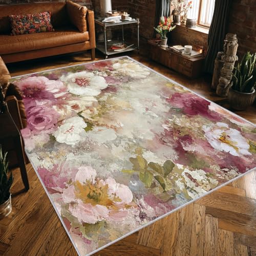 Blume Teppich Groß Wohnzimmer 200x300 Waschbar Mit Muster Vintage Blumen Rosa Teppiche Gegend Schlafzimmer Deko & Wohnaccessoires, Kurzflor Teppich Weich rutschfest, FD2571