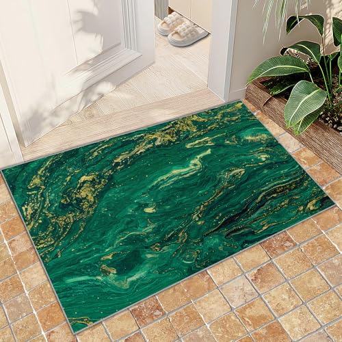 Teppich Im Europäischen Stil, Tintenpfingstrosen-Blumenmuster, Rutschfester Teppich Für Schlafzimmer Und Esszimmer, Leicht Zu Reinigen, Heimdekoration(Emerald Marble,70 x 120 cm)