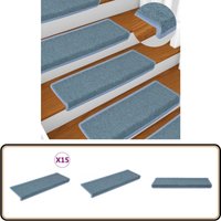Stufenmatten 15 Stk. 65x21x4 cm Blau - Stufenmatte - Treppenmatte - Trittschutz - Rutschfeste Matte - Teppich Für Treppen